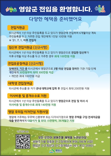 Àα¸À¯ÀÔ Áö¿øÁ¤Ã¥¿¡ ´ëÇÑ ÀÚ¼¼ÇÑ ¾È³»´Â ¿µ¾Ï±º Àα¸Á¤Ã¥ÆÀ(061-470-2080)¿¡¼ ¾È³»ÇÑ´Ù.