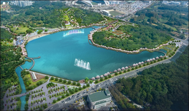 ±¤ÁÖ½Ã¿Í »ç¾÷½ÃÇàÀڴ ȣ¼öÀÇ ¼öÁú¹®Á¦ °³¼±°ú ´õºÒ¾î È£¼ö ÁÖº¯¿¡´Â »êÃ¥·Î¿Í ¹é»çÀå, Àü¸Á´ë, ¾ß¿ÜÀ½¾Ç´ç µîÀÌ »õ·Ó°Ô µé¾î¼ Ä£¼ö°ø°£À» ´ëÆø È®ÃæÇÒ °èȹÀÌ´Ù. ƯÈ÷ »õ·Ó°Ô Á¶¼ºµÉ Àå¹Ì¿øÀº ±âÁ¸ ºÎÁöº¸´Ù ¾à 30% Á¤µµ È®ÀåµÅ ¾à 2500Æò ÀÌ»ó ±Ô¸ðÀÇ µµ½É ¼û½¬´Â °ø°£ÀÇ »ýÅ ÈÞ½Ä °ø°£À¸·Î ¼±º¸ÀδÙ.