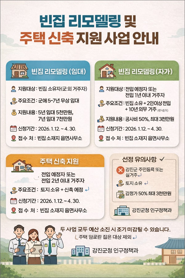 ±ºÀº '2026³â ÁÖÅà ½ÅÃà Áö¿ø»ç¾÷'°ú '»ó¹Ý±â ºóÁý ¸®¸ðµ¨¸µ Áö¿ø»ç¾÷'À» ÅëÇØ ÀüÀÔ ¿¹Á¤ÀÚ¿Í ½Å±Ô ÀüÀÔÀÚÀÇ ÁÖ°Å ¾ÈÁ¤°ú Á¤ÁÖ ±â¹Ý ¸¶·ÃÀ» Áö¿øÇÒ °èȹÀÌ´Ù.