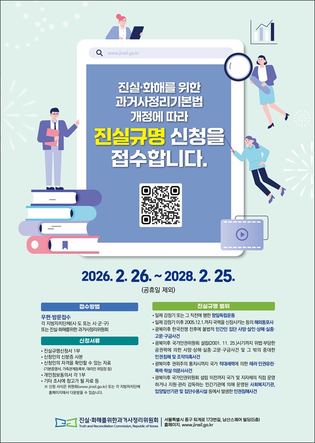 ½ÅûÀº Çѱ¹ÀüÀï ÀüÈÄ ¹Î°£ÀÎ Áý´ÜÈñ»ý »ç°Ç µî ±¹°¡ Æø·Â°ú ÀαÇÄ§ÇØ »ç°ÇÀÇ Áø»óÀ» ¹àÈ÷°í, ÇÇÇØÀÚ ¸í¿¹¸¦ ȸº¹Çϱâ À§ÇÑ ÀýÂ÷·Î, 2028³â 2¿ù25ÀϱîÁö 2³â°£ ÇÒ ¼ö ÀÖ´Ù.