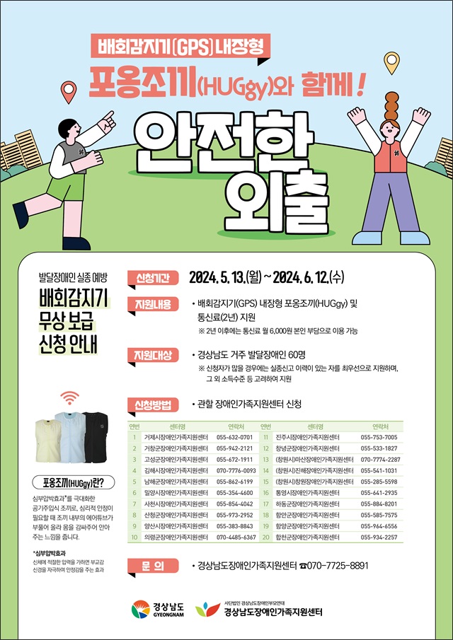 ½ÅûÀº 6¿ù12ÀϱîÁöÀ̸ç, °æ»ó³²µµ¿Í ½Ã±º Àå¾ÖÀΰ¡Á·Áö¿ø¼¾Å͸¦ ÅëÇØ ½ÅûÇÒ ¼ö ÀÖ´Ù. ÀÚ¼¼ÇÑ ³»¿ëÀº °æ»ó³²µµÀå¾ÖÀΰ¡Á·Áö¿ø¼¾ÅÍ(070-7725-8891)¿Í °¢ ±Ç¿ªº° ¼öÇà±â°ü¿¡¼ È®ÀÎÀÌ °¡´ÉÇϸç, ¼¾ÅÍ ´©¸®Áý(http://www.knfamily.or.kr/)¿¡¼µµ ¾È³»ÇÒ ¿¹Á¤ÀÌ´Ù.