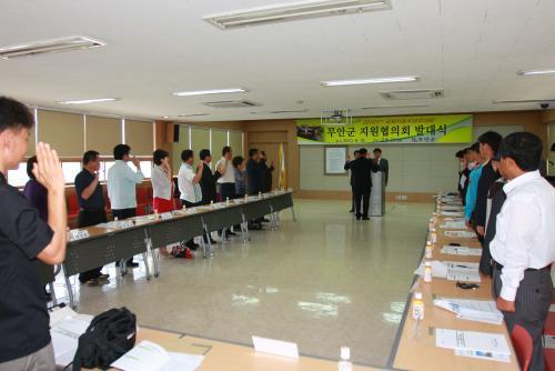 [¹«¾È=Á¤½ÂÀÓ ±âÀÚ] F1 ±¹Á¦ÀÚµ¿Â÷°æÁÖ´ëȸ ¼º°ø °³ÃÖ¸¦ À§ÇÑ ¹«¾È±ºÁö¿øÇùÀÇȸ°¡ ¼»ï¼® ¹«¾È±º¼ö¿Í ÇùÀÇȸ À§¿ø µî 40 ¿© ¸íÀÌ Âü¼®ÇÑ °¡¿îµ¥ Áö³ 16ÀÏ ±ºÃ» ȸÀǽǿ¡¼ ¹ß´ë½ÄÀ» °®°í F1 ´ëȸ ±º¹Î ºÕ È®»êÀ» À§ÇÑ È°µ¿¿¡ º»°Ý µ¹ÀÔÇß´Ù.