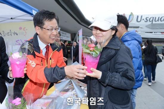 | | ÃÖ¼º °í¾ç½ÃÀåÀÌ ±¤ÁÖ¹ö½ºÅ͹̳ο¡¼ ²É¹Ú¶÷ȸ È«º¸¸¦ Çϰí ÀÖ´Ù. |