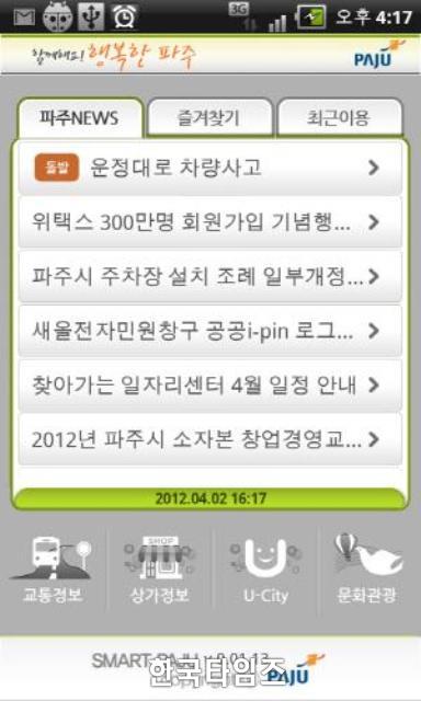 [Çѱ¹Å¸ÀÓÁî ¹®Ãæ¿ë ±âÀÚ] °æ±âµµ ÆÄÁֽô ½Ã¹ÎÀÌ ½º¸¶Æ®ÆùÀ¸·Î ¼Õ ½±°Ô ½ÃÁ¤Á¤º¸¿¡ Á¢±ÙÇÒ ¼ö ÀÖµµ·Ï '½º¸¶Æ® ÆÄÁÖ' ¾ÛÀ» ±¸±Û¸¶Äϰú ¾Û½ºÅä¾î¸¦ ÅëÇØ ÀÌ´ÞºÎÅÍ ¼ºñ½º¸¦ ½ÃÀÛÇß´Ù°í 12ÀÏ ¹àÇû´Ù.