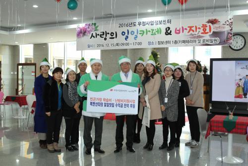 2015³âºÎÅÍ ½ÃÀÛÇÑ '»ç¶ûÀÇ ÀÏÀÏÄ«Æä' Çà»ç¿¡´Â ¿¬¸»À» ¸Â¾Æ Áö¿ª»çȸ ¾î·Á¿î ÀÌ¿ôÀ» µ½±âÀ§ÇØ ¿ìÁ¤»ç¾÷Á¤º¸¼¾Å͸¦ ºñ·ÔÇØ Çù·Â»ç ÀÓÁ÷¿øµéÀÌ ¸ðµÎ µ¿ÂüÇß°í ÀÓÁ÷¿øµéÀÌ Á÷Á¢ Á¤¼ºµé¿© ¸¸µç ¼Õ¶ß°³ ¼ö¼¼¹Ì ÆÇ¸Å¿Í Áý¿¡¼ °¡Àú¿Â °¢Á¾ Áß°í¹°Ç° ÆÇ¸Å¸¦ ÅëÇØ ¸¶·ÃµÈ ¼öÀÍ±Ý Àü¾×À» ÃÊ·Ï¿ì»ê ¾î¸°ÀÌÀç´Ü Àü³²Áö¿ªº»ºÎ(º»ºÎÀå ÃÖ¿µÃ¶)¿¡ Àü´ÞÇß´Ù.