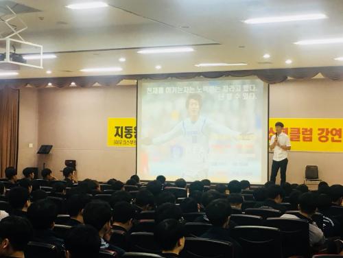 Áöµ¿¿ø ¼±¼ö´Â °¿¬ÀÌ ³¡³ ÈÄ °¿¬À» µéÀº 300¸í Çлý ¸ðµÎ¿¡°Ô »çÀÎÀ» ÇØÁÖ¾úÀ¸¸ç, ¸ðµç ÇлýµéÀº "Áöµ¿¿ø ¼±¼ö ÆÄÀÌÆÃ!"À̶ó°í ¿ÜÄ¡¸ç °¨»çÀλ縦 ÀüÇß´Ù.