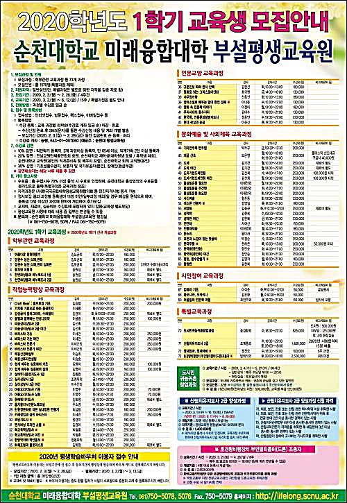 ¼øÃµ´ë Æò»ý±³À°¿ø, 2020Çг⵵ 1Çб⠼ö°»ý ¸ðÁý