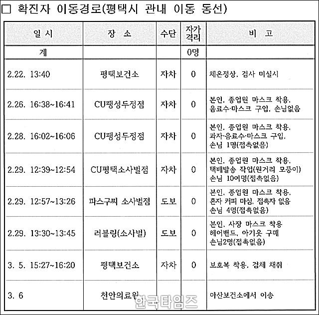 ½Ã´Â È®ÁøÀÚÀÇ ÆòÅà ³» ÁÖ¿ä µ¿¼±¿¡ ´ëÇØ, 2¿ù26ÀÏ 16½Ã38ºÐ CUÆØ¼ºµÎÁ¤Á¡, 2¿ù28ÀÏ 16½Ã02ºÐ CUÆòÅõÎÁ¤Á¡, 2¿ù29ÀÏ 12½Ã39ºÐ CUÆòÅüһç¹úÁ¡, 2¿ù29ÀÏ 12½Ã57ºÐ ÆÄ½º±¸Âî ¼Ò»ç¹úÁ¡, 2¿ù29ÀÏ 13½Ã30ºÐ ·¯ºí¸µ(¼Ò»ç¹ú), 3¿ù5ÀÏ ÆòÅú¸°Ç¼Ò ¼±º°Áø·á¼Ò¿¡¼ °Ë»ç ÈÄ 6ÀÏ È®Áø ÆÇÁ¤À» ¹Þ¾Ò´Ù°í ¼³¸íÇß´Ù.