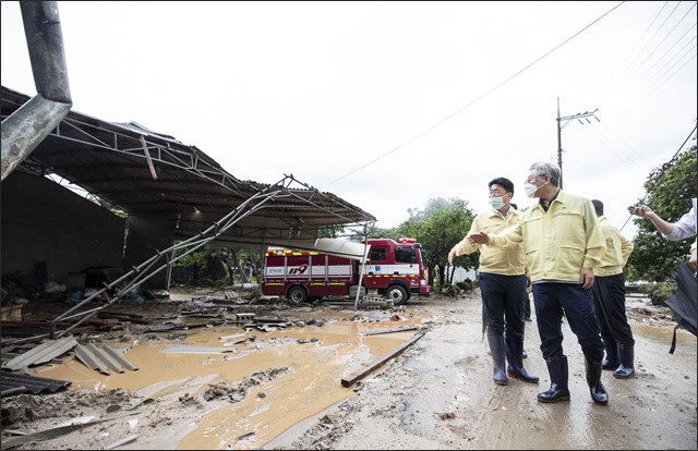 À̾î ÇÇÇØ¸¦ ÀÔÀº Áֹεé°ú º¹±¸ ÁßÀÎ °ø¹«¿øµé¿¡°Ô »óȲÀ» ÀüÇØµéÀº µÚ "ÀÌõ ½Ã¹ÎµéÀÌ ½Å¼ÓÇÏ°Ô Àç³À» ±Øº¹ÇÏ°í º¹±¸ÇÒ ¼ö ÀÖµµ·Ï µµ¿¡¼ ÃÖ¼±À» ´ÙÇØ Áö¿øÇϰڴÙ. Èû³»½Ã¶ó"°í °Ý·ÁÇß´Ù.