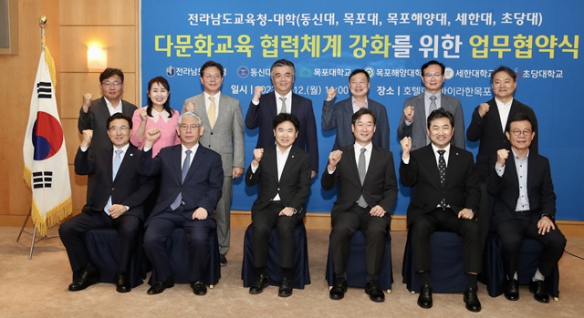 5°³ ´ëÇÐ(µ¿½Å´ë, ¸ñÆ÷´ë, ¸ñÆ÷ÇØ¾ç´ë, ¼¼ÇÑ´ë, ÃÊ´ç´ë)Àº ÀÌ¹Ì 10~15³â ÀüºÎÅÍ ¿Ü±¹ À¯Çлý À¯Ä¡ ¹× ´Ù¹®È±³À°¿¡ ´ëÇØ ¿¬±¸¸¦ ÇØ¿À°í ÀÖÀ¸¸ç ´Ù¹®È±³À° °ü·Ã Àü¹® ÀηµéÀ» È®º¸Çϰí ÀÖ´Ù. ÀÌ¿¡ µû¶ó Àü³²±³À°Ã»ÀÇ ´Ù¹®È±³À° Áö¿ø°èȹÀ» ÁöÁöÇÏ¸ç ´Ù°¢µµÀÇ ³íÀÇ¿Í Çù·ÂÀ» ±â¿ï¿© ¿Ô°í, ¾ÕÀ¸·Îµµ ¶æÀ» ¸ð¾Æ Áö¿ª»ó»ýÀ» ±æÀ» ã°íÀÚ À̳¯ Çù¾àÀ» ¸Î°Ô µÈ °ÍÀÌ´Ù.