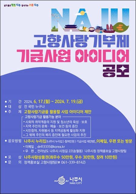 ³ªÁֽô ¿À´Â 7¿ù19ÀϱîÁö ÇÑ ´Þ°£ Àü ±¹¹ÎÀ» ´ë»óÀ¸·Î ³ªÁÖ°íÇâ»ç¶û±âºÎÁ¦ ±â±Ý»ç¾÷ ¾ÆÀ̵ð¾î¸¦ °ø¸ðÇÑ´Ù°í ¹àÇû´Ù.
