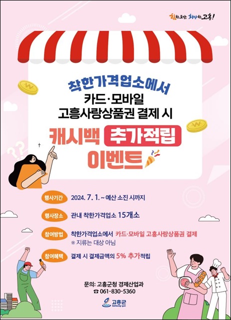 °íÈﱺÀº Áö¼ÓµÇ´Â °í¹°°¡¡¤°í±Ý¸® »óȲÀ» ±Øº¹Çϰí Áö¿ª°æÁ¦¸¦ Ȱ¼ºÈÇϱâ À§ÇØ ¿À´Â 7¿ù1ÀϺÎÅÍ ¿¹»ê ¼ÒÁø ½Ã±îÁö °ü³» ÂøÇѰ¡°Ý¾÷¼Ò¿¡¼ °íÈï»ç¶ûÄ«µå¡¤¸ð¹ÙÀÏ °íÈï»ç¶û»óǰ±Ç °áÁ¦ ½Ã 5% Ãß°¡ ij½Ã¹é ÇýÅÃÀ» Á¦°øÇÑ´Ù.