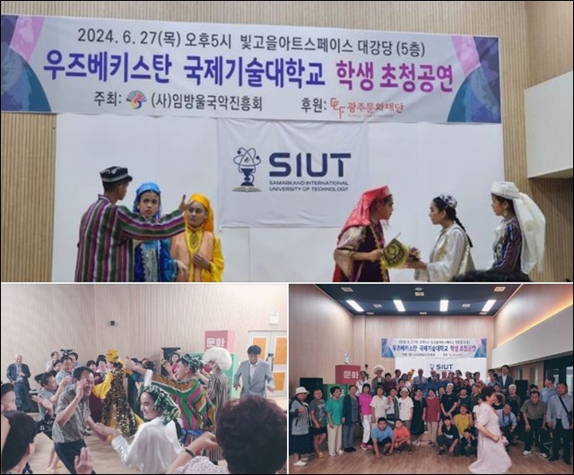 °í·ÁÀθ¶À»¿¡ µû¸£¸é, À̳¯ °ø¿¬Àº »ç´Ü¹ýÀÎ ÀÓ¹æ¿ï±¹¾ÇÁøÈïȸ°¡ ÁÖÃÖÇÏ°í ±¤ÁÖ¹®ÈÀç´ÜÀÌ ÈÄ¿øÇÑ °ø¿¬À¸·Î °í·ÁÀθ¶À» ÁֹΠ50¿©¸íÀ» ÃÊÃ»ÇØ ¿ìÁŰ½ºÅº ÀüÅëÃã°ú ³ë·¡, ¿¬±Ø, ¾Ç±â¿¬ÁÖ µî ´Ùä·Î¿î ÇÁ·Î±×·¥À¸·Î ÁøÇàµÆ´Ù.