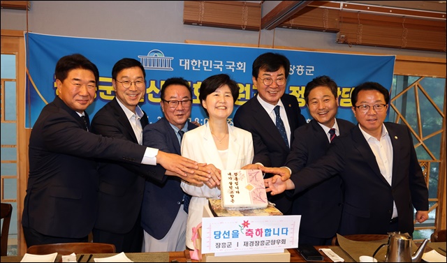 ÀåÈﱺ Ãâ½Å ±¹È¸ÀÇ¿øµéÀº Á¤³²Áø ÀåÈï ¹°ÃàÁ¦, ´ëÇѹα¹ ÅëÇÕÀÇÇÐ ¹Ú¶÷ȸÀÇ ¼º°ø °³ÃÖ¸¦ ±â¿øÇϸç, ÀåÈﱺÀÇ ÁÖ¿ä Çö¾È »ç¾÷ÀÇ Á¶¼ÓÇÑ ÇØ°áµÉ ¼ö ÀÖµµ·Ï ÈûÀ» º¸ÅÂ°Ú´Ù°í ¸»Çß´Ù.