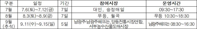 ¶Ç Ãß¼®¸íÀýÀ» ¾ÕµÎ°í 9¿ù11ÀϺÎÅÍ 15ÀϱîÁö ±¤ÁÖ ´ëÇ¥ ¼ö»ê½ÃÀåÀÎ ¾çµ¿ÀüÅë½ÃÀå, ³²±¤ÁÖ¡¤³²±¤ÁÖÇØ¶ß´Â½ÃÀå, ¼ºÎµµ¸Å½ÃÀå¿¡¼ ȯ±ÞÇà»ç°¡ ÁøÇàµÉ ¿¹Á¤ÀÌ´Ù.