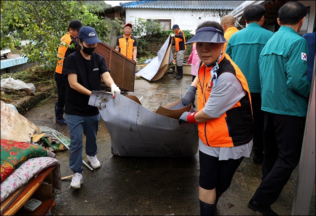 ÀÚ¿øºÀ»çÀÚµéÀÇ ÀÚ¹ßÀûÀÎ Âü¿©µµ ºû³µ´Ù. 22Àϰú 23ÀÏ, ¾çÀϰ£ °Áø±ºÀÚ¿øºÀ»ç´ÜüÇùÀÇȸ ¼Ò¼Ó 200¿© ¸íÀÌ ¼öÇØº¹±¸ ÀÛ¾÷¿¡ ÆÈÀ» °È¾îºÙ¿´´Ù. º´¿µ¸é°ú ÀÛõ¸éÀÇ Ä§¼ö °¡¿ÁÀ» Á¤¸®Çß°í, À̵¿ ¼¼Å¹ Â÷·®À» Áö¿øÇÏ´Â µî ÀϼÕÀÌ ÇÊ¿äÇÑ °÷¿¡ ¸ÕÀú ´Þ·Á°¬´Ù. ¼ºÀü¸é ¿ÀÀϽÃÀå ¼öÇØ º¹±¸¿¡µµ ±ä±ÞÈ÷ ÅõÀÔµÈ ÀÚ¿øºÀ»çÀÚµéÀº ÇöÀå¿¡¼ ±¸½½¶¡À» È긮¸ç ÈûÀ» º¸ÅÉ´Ù.