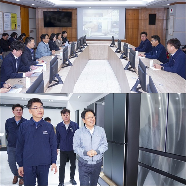 ° ½ÃÀåÀº À̳¯ °£´ãȸ¸¦ ¸¶Ä¡°í »ï¼ºÀüÀÚ ±¤ÁÖ»ç¾÷Àå Á¦1Ä·ÆÛ½º¿¡ ¸¶·ÃµÈ È«º¸°ü¿¡¼ ³ÃÀå°í¡¤¼¼Å¹±â¡¤¿¡¾îÄÁ µî »ý»êÁ¦Ç°°ú »ï¼ºÀüÀÚ ±¤ÁÖ»ç¾÷ÀåÀÌ ±¸Ãà ÁßÀÎ ÃֽŠ»ý»ê¶óÀÎ Á¶°¨µµ µîÀ» »ìÆìºÃ´Ù.