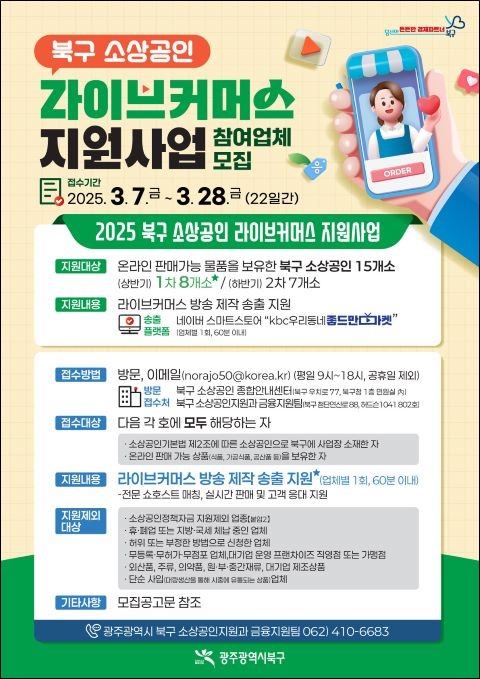 »ç¾÷¿¡ Âü¿©ÇÏ°í ½ÍÀº ¼Ò»ó°øÀÎÀº ºÏ±¸Ã» ´©¸®Áý¿¡ °Ô½ÃµÈ °øÁö »çÇ×À» Âü°íÇØ ½Åû¼ ¹× ±¸ºñ¼·ù¸¦ À̸ÞÀÏ(norajo50@korea.kr)·Î Á¦ÃâÇÏ¸é µÇ°í, ±âŸ ÀÚ¼¼ÇÑ »çÇ×Àº ºÏ±¸Ã» ¼Ò»ó°øÀÎÁö¿ø°ú(062-410-6683)·Î ¹®ÀÇÇÏ¸é µÈ´Ù.