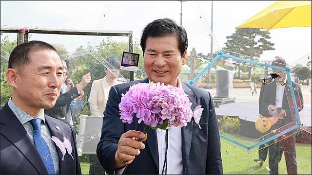 À̳¯ ¿ÀÈÄ 7½Ã¿¡´Â ³ªºñ´ëÃàÁ¦ °³¸·½ÄÀÌ ¿·Á Áֹΰú °ü±¤°´ÀÌ ÇÔ²²ÇÏ´Â °¡¿îµ¥ ÃàÁ¦ÀÇ Âù¶õÇÑ ½ÃÀÛÀ» ¼±Æ÷Çß´Ù. °³¸· ÃàÇÏ °ø¿¬¿¡´Â °¡¼ö Á¶¼º¸ð¿Í ¼ÒÂùÈÖ°¡ È·ÁÇÑ °ø¿¬À» ¼±º¸À̸ç ÃàÁ¦ÀÇ ¿±â¸¦ ´õÇß´Ù.