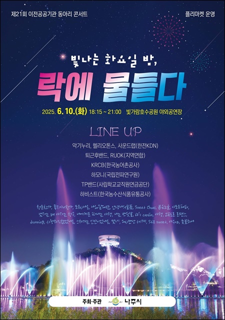 Àü³² ³ªÁֽô 10ÀÏ ¿ÀÈÄ 6½ÃºÎÅÍ 9½Ã±îÁö ºû°¡¶÷È£¼ö°ø¿ø ¾ß¿Ü°ø¿¬Àå¿¡¼ 'Á¦21ȸ ÀÌÀü °ø°ø±â°ü Á¤±â µ¿¾Æ¸® ÄܼƮ'¸¦ °³ÃÖÇÑ´Ù°í ¹àÇû´Ù.
