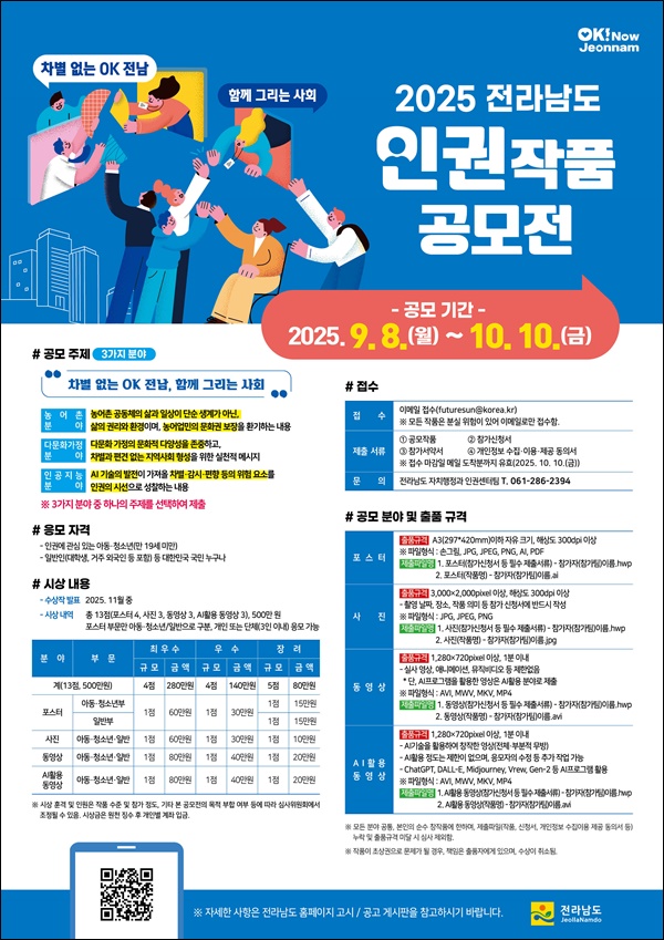 °ø¸ð´Â 'Â÷º° ¾ø´Â OK Àü³², ÇÔ²² ±×¸®´Â »çȸ'·Î, ³ó¾îÃÌ, ´Ù¹®È, µðÁöÅÐ ÀαÇ(AI) µî Àü³²ÀÇ Çö½Ç°ú ½Ã´ëÀû È帧À» ¹Ý¿µÇÑ 3´ë ÁÖÁ¦¸¦ Áß½ÉÀ¸·Î ÁøÇàµÈ´Ù.