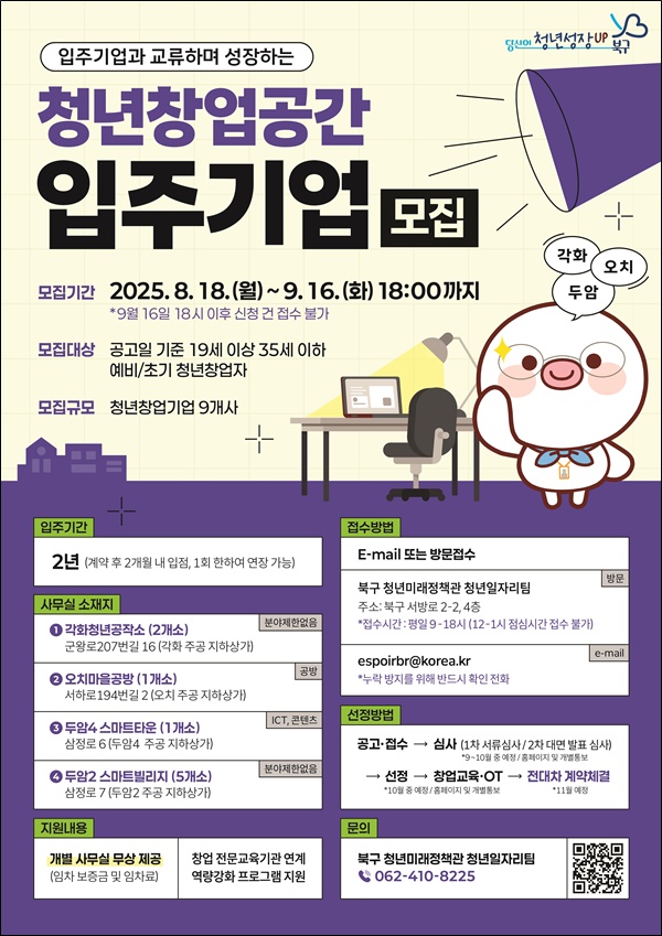â¾÷°ø°£ ÀÔÁÖ¸¦ ½ÅûÇÏ·Á´Â û³â â¾÷°¡´Â ºÏ±¸Ã» ´©¸®Áý¿¡ °Ô½ÃµÈ °øÁö»çÇ×À» Âü°íÇØ ±¸ºñ¼·ù¸¦ À̸ÞÀÏ ¶Ç´Â ¹æ¹® Á¦ÃâÇÏ¸é µÇ°í, ±âŸ ÀÚ¼¼ÇÑ »çÇ×Àº ºÏ±¸Ã» û³â¹Ì·¡Á¤Ã¥°ü(062-410-8225)¿¡ ¹®ÀÇÇÏ¸é µÈ´Ù.